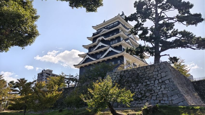 三重の隅櫓で本瓦葺。