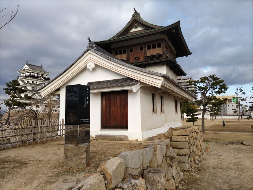 京都・伏見城から移建されたもので、追手側(南)も入江方面も展望出来る南東隅に築かれた二重櫓。
