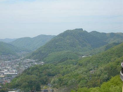 ![]() 備中松山城遠景 正面の山が備中松山城がある臥牛山で左側が高梁市中心部 |